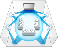 The greatest advantage of the Digital Sound Projector is that its effects are real. Real sound actually reflected from behind off a wall cannot in any way be genuinely reproduced by a virtual system. And there’s more. With YSP, sounds reflected off the wall spread naturally, resonating throughout the entire room to produce a seamless sound field space.