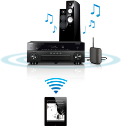 Questo sintoamplificatroe AV è dotato di connessione DC-out per adattatore wireless YBA-11 (accessorio opzionale). Potrete effettuare lo streaming musicale in wireless da smartphone , tablet o PC dotato di Bluetooth senza un ambiente WiFi