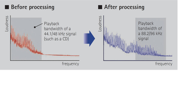 L' Hi-bit high-sampling extension fino a 96 kHz / 24-bit può essere applicata a contenuti lossless 44.1/48 kHz come CD (PCM 2-canali) o file FLAC per accrescere ulteriormente la musicalità dei contenuti originali.