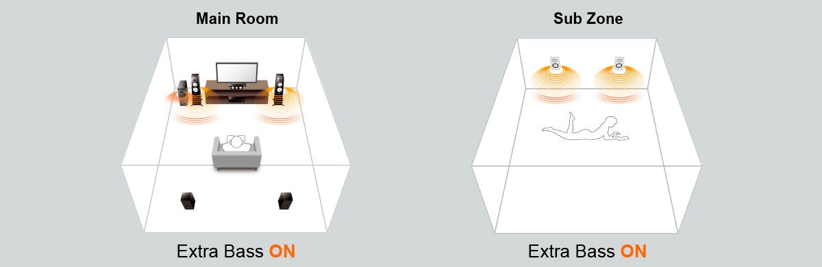 Zone Extra Bass per una riproduzione dei bassi ancora più potente in altre stanze (Zone 2 e 3)