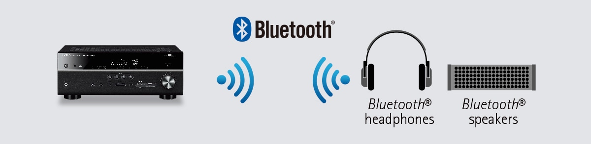 RX-V583 è dotato della tecnologia Bluetooth di ultima generazione. La connessione wireless non è mai stata così semplice. È possibile effettuare lo streaming della musica da RX-V583 verso altri dispositivi o cuffie Bluetooth.
