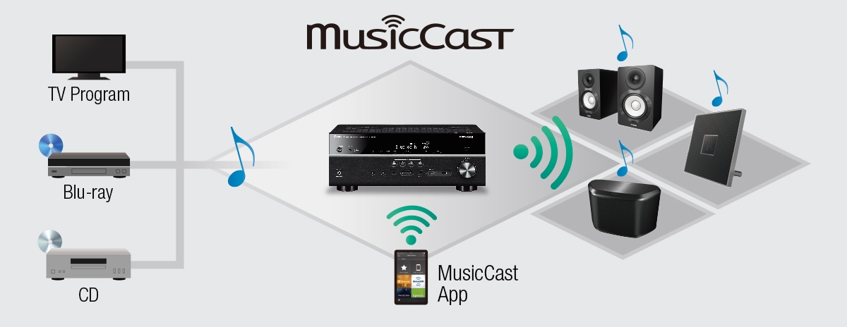 MusicCast è una rivoluzione per la musica in rete. Potrete decidere di accoppiare tutti i vostri dispositivi MusicCast o usarli in maniera indipendente. Controllate tutto da un'unica app intuitiva, veloce e facile da usare. MusicCast è disponibile sulle soundbar, gli speaker wireless, i sintoamplificatori AV e i sistemi Hi-Fi per assecondare ogni vostra esigenza e agevolare l'integrazione nel corso degli anni. Una novità di Yamaha, il sistema MusicCast porta la musica di tutti ovunque.