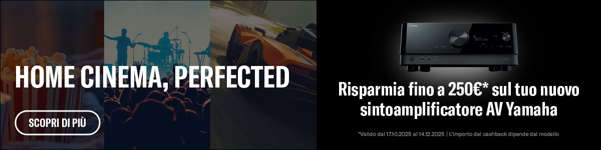 La scocca essenziale e slanciata di Yamaha trasmette all'istante l'ambizione di Totale Controllo Casalingo. Lo stile iconico e rifinito punta alle prestazioni e alla facilità d'uso. Un'armonia che combina eleganza, funzionalità e qualità costruttiva.