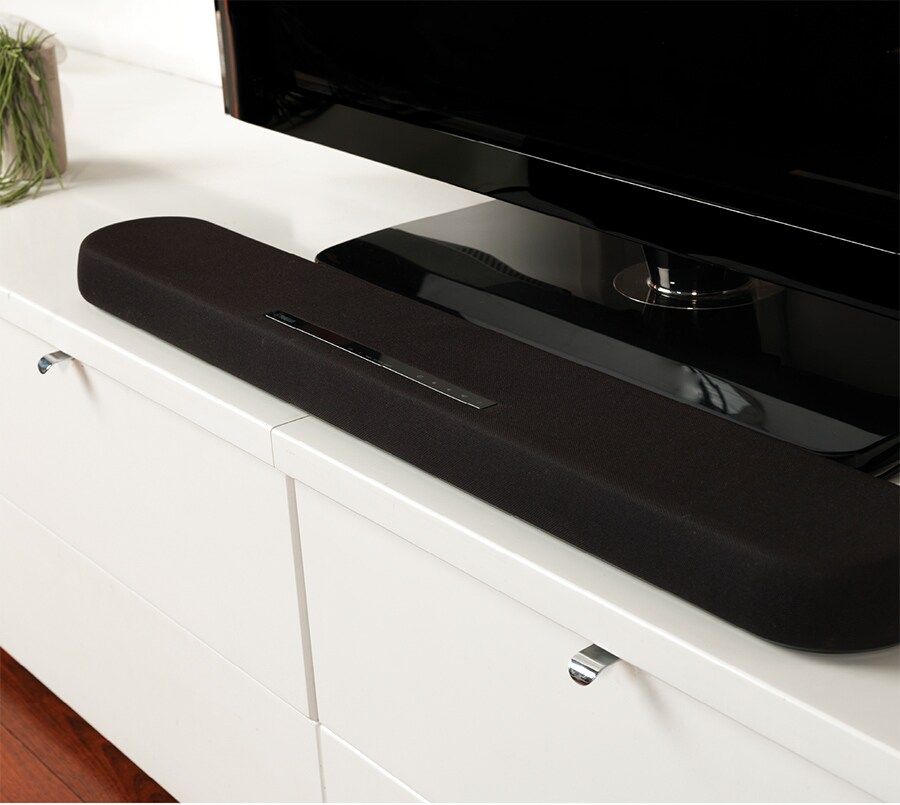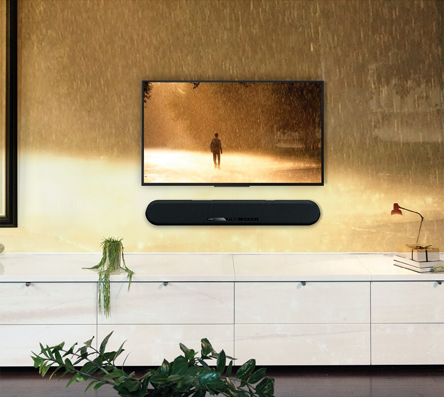 Scoprite l'esperienza di ascolto TV ad alta tensione. Questa soundbar sottile si integra perfettamente di fronte alla vostra TV e può anche essere installata a parete. Grazie alla connessione TV con un solo cavo la configurazione è immediata, mentre il Bluetooth® consente di riprodurre in streaming wireless la musica preferita da smartphone e dispositivi Amazon Alexa.
