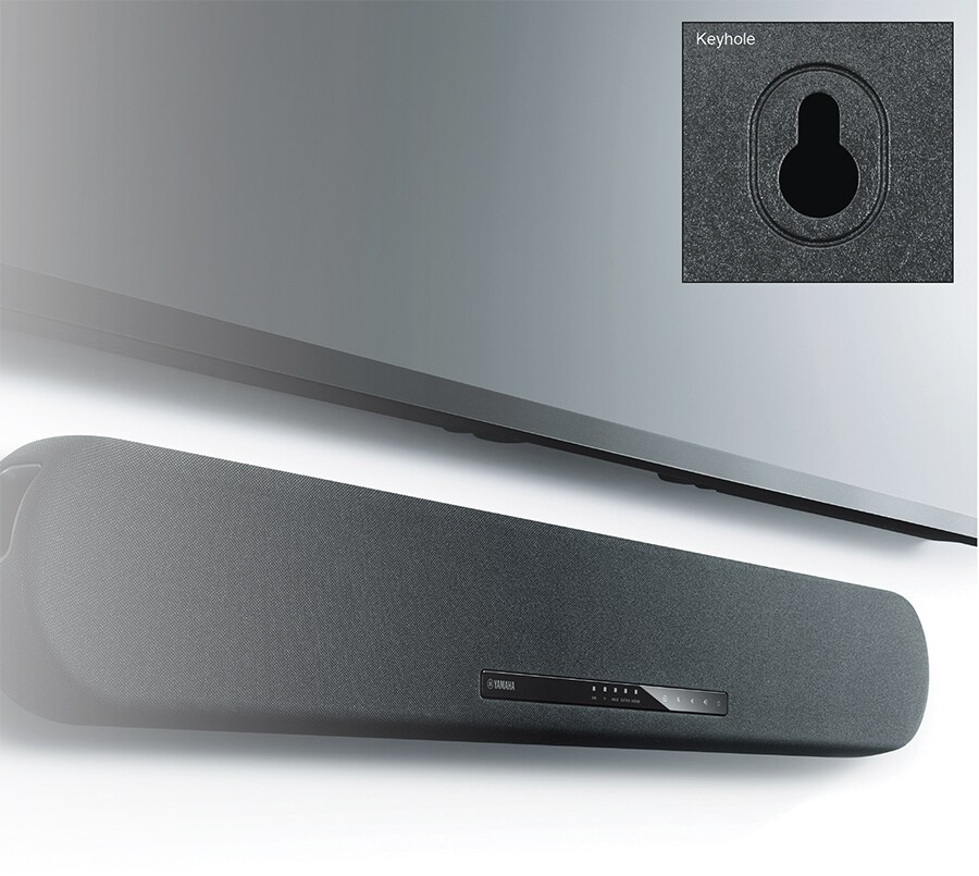 I fori permettono una facile installazione a parete e il sensore giroscopio integrato ottimizza il suono in base al posizionamento verticale o piatto della soundbar.