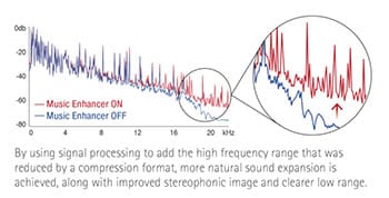 La tecnologia Compressed Music Enhancer ripristina la risposta in frequenza persa durante la compressione e restituisce una qualità d'ascolto ottimale.