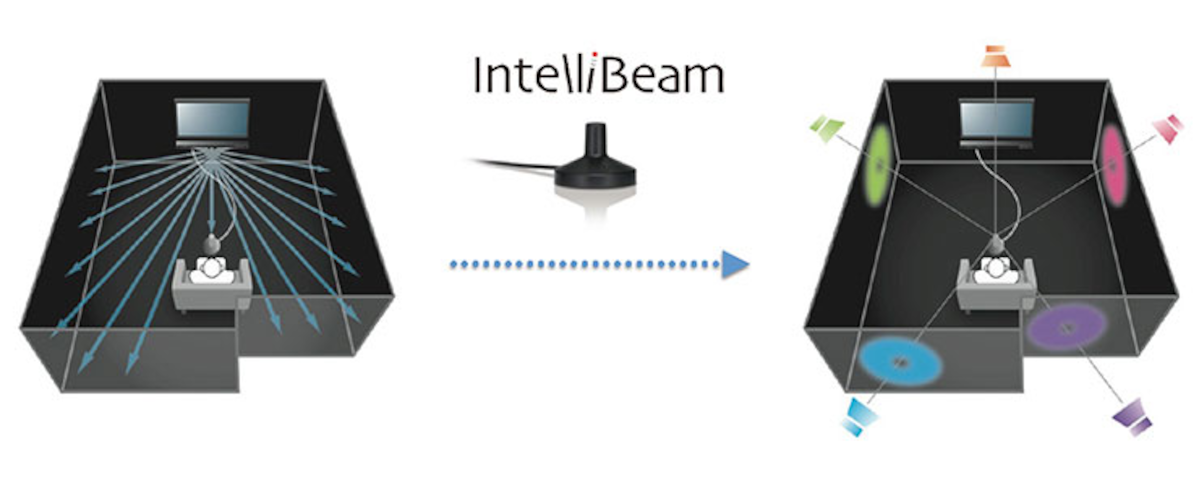 La tecnologia di calibrazione acustica Yamaha IntelliBeam™ regola automaticamente l'ottimale ambiente d'ascolto. L'utente deve semplicemente seguire le istruzioni a schermo e premere qualche pulsante. La tecnologia misura le caratteristiche acustiche dell'ambiente, come dimensioni, forma e materiale rivestimento pareti e regola gli angoli dei raggi, la loro lunghezza focale, il volume e altri parametri audio. Ne risulta una precisa ottimizzazione acustica per il punto d'ascolto, indipendentemente dalle dimensioni e dalla forma dell'ambiente.
