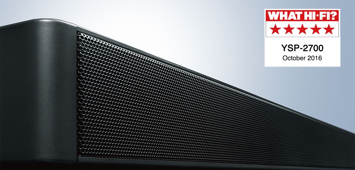 La prestigiosa rivista What Hi-Fi ha conferito 5 stelle alla soundbar surround MusicCast YSP-2700 di Yamaha. La recensione sottolinea l'eccezionale dinamica e qualità della suondbar, capace di un surround coinvolgente grazie ai raggi sonori che rimbalzano attorno alla stanza. È perfetta per i film ma anche per la musica o qualsiasi altro contenuto. La ricchezza di funzionalità, come Clear Voice, l'Auto Calibrazione, il multi-room di MusicCast e numerose modalità CinemaDSP adatte a qualsiasi contenuto, ne fanno una soundbar dallo straordinario rapporto qualità / prezzo.