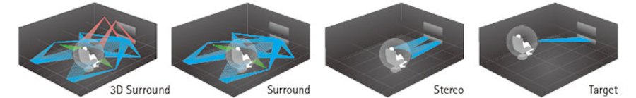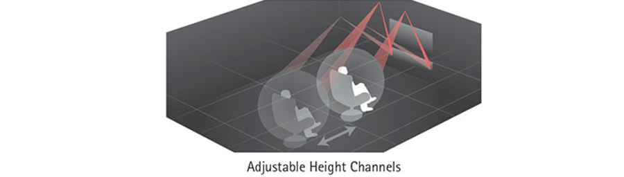 Per riprodurre i più recenti formati surround come Dolby Atmos e DTS:X, la relazione tra la posizione d'ascolto e i canali alti è fondamentale al fine di una riproduzione fedele della spazialità. La YSP-5600 è in grado di regolare - manualmente o automaticamente - l'angolazione dei raggi sonori diretti al soffitto per raggiungere la posizione d'ascolto. Anche se la posizione d'ascolto cambia in relazione allo schermo sarete in grado di ottenere uno straordinario effetto dei canali alti per un surround 3D estremamente naturale.