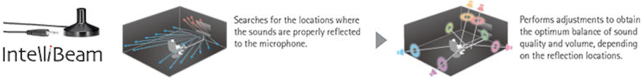 YSP-5600 utilizza un sistema per utilizzare di raggi ed il suono con l'aiuto del microfono IntelliBeam presente nella confezione, permettendovi di evitare problemi di ascolto legati al setup e ottenendo un'accurata regolazione del suono adattandolo all'ambiente di ascolto. Queste due funzioni vengono chiamate IntelliBeam. La posizione dei raggi sonori diretti al soffitto possono essere impostate automaticamente.