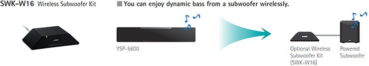 SWK-W16 può essere collegato al subwoofer per renderlo wireless. Non serviranno cavi tra YSP-5600 e il subwoofer migliorando le possibilità di disposizione dei componenti.