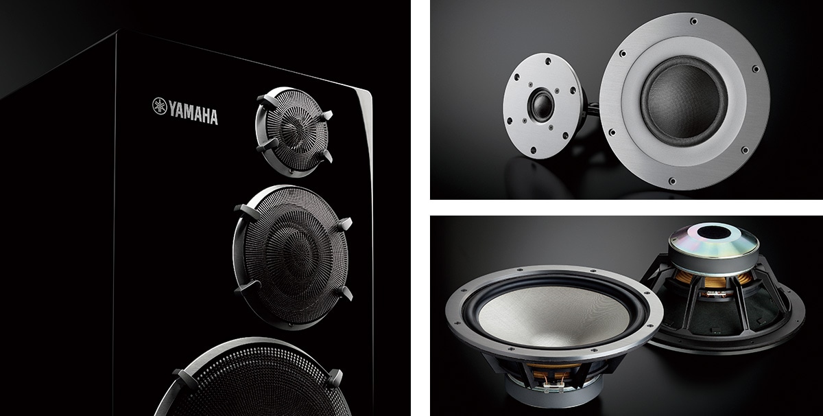 I tweeter, midrange e woofer del NS-5000 utilizzano diaframmi in ZYLON® al 100%* - una fibra sintetica sviluppata in Giappone che vanta la migliore robustezza** ed elasticità al mondo - e un esclusivo rivestimento Yamaha in acciaio monel tramite deposito al vapore. Il diaframma a cupola morbida elimina i picchi e i buchi della risposta in frequenza causati dalle risonanze del diaframma, mantenendo comunque un'elevata velocità acustica grazie allo ZYLON, dalle proprietà paragonabili a soluzioni in berillio. Ne consegue una risposta in frequenza particolarmente piatta, dalla tonalità e velocità omogenea a tutte le frequenze, in grado di restituire un grande piacere d'ascolto e una riproduzione del suono quanto mai fedele e sbalorditiva.