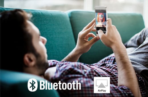 Ascoltate tutta la musica con il vostro smartphone tramite connessione wireless Bluetooth® o AirPlay® e riproducete app musicali, radio web o l'audio da servizi video come YouTube™.