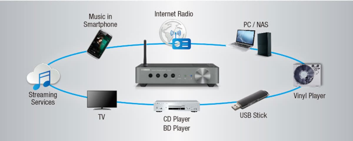 WXA-50 è compatibile con qualsiasi sorgente e con moltissime sorgenti tra cui i servizi di musica in streaming. E' dotato di numerosi ingressi per connettere TV, lettore CD, computer e componenti AV. Sarete in grado di ascoltare tutta la vostra musica preferita da qualunque sorgente direttamente dal vostro dispositivo MusicCast.