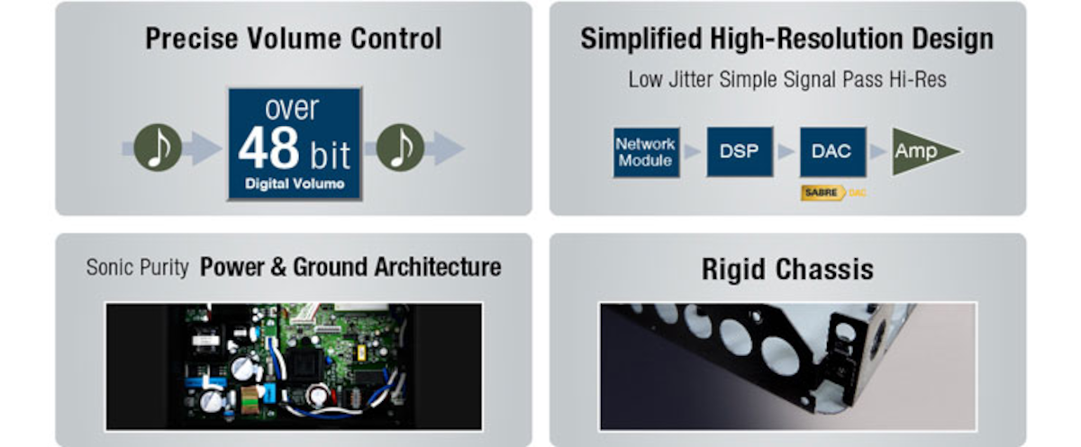 Il WXA-50 eredita tutte le tecnologie ed il miglior design della tradizione Yamaha. Il circuito preamplificato per esempio minimizza i nervosismi digitali sonori ed usa gli stessi ESS DAC che possiamo trovare degli AV Receiver di alta gamma. Yamaha DAC assicura che l’impulso energetico non comprometta negativamente la qualità del suono. Il controllo digitale 48-bit fornisce un migliore precisione e qualità sonora dei convenzionali controlli digitali ed analogici. In aggiunta, uno chassis di metallo di altro livello fornisce la necessaria stabilità per una riproduzione del suono chiara e precisa