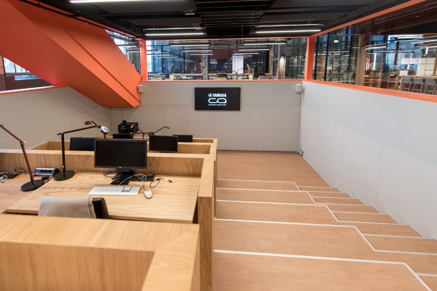 Future Lab is a room for large, complex AV presentations and one of six themed ‘laboratories’ at LocHal, designed to inspire learning. Here the audio system comprises a pair of Yamaha VXS8 surface-mount loudspeakers, powered by a PX3 power amplifier with system management by another MTX3.
