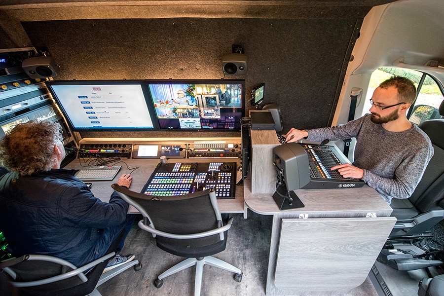 The broadcaster is a long-term user of Yamaha digital mixing consoles, with a number of 01V96s used for live events and a DM2000 in its large DAF outside broadcast truck. It recently added a new, medium-sized Volkswagen OB van - which has the advantage that it can be driven on a normal driving licence - featuring a Yamaha QL1 digital mixer. Designed and built by the broadcaster’s own technicians, the van is specifically tailored to their needs.