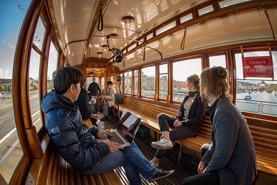 In between the sessions, guests were invited to enjoy a fully-immersive, 3D virtual reality tram ride through Prague. This was recorded using Yamaha's ViReal 64-channel spherical microphone array, the sound being played back through Yamaha headphones accompanying video on Oculus Go headsets.