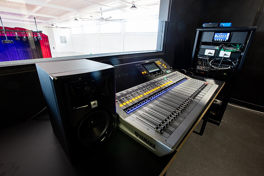 Audio has been provided in two modes. Basic is controlled from a side-of-stage touch panel and a main bio box location, giving the user control of three radio mics, video and lighting. Advanced mode controls the Yamaha TF5 console, patch points throughout the venue and four radio mics.