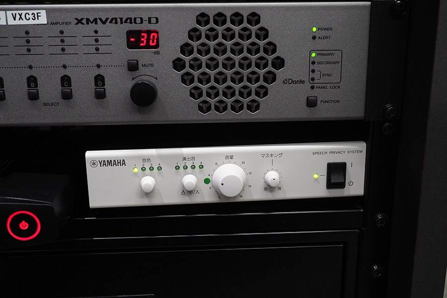 In addition to "ADECIA", the demo room is also equipped with a speech privacy system called "VSP-2" that plays back information masking sounds to protect the privacy of the conversation and to provide an office environment where you can concentrate on your work. We also demonstrate this.