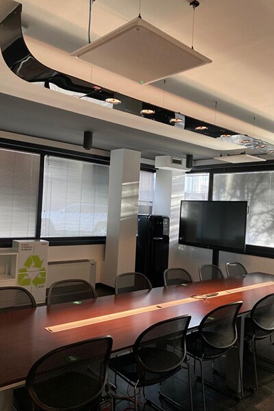 Just as importantly, the dispersion pattern of the VXL1W-16P speakers makes sure that sound is directed towards people in the room and kept away from the reflective walls and windows, ensuring remote participants are clearly heard at all times.