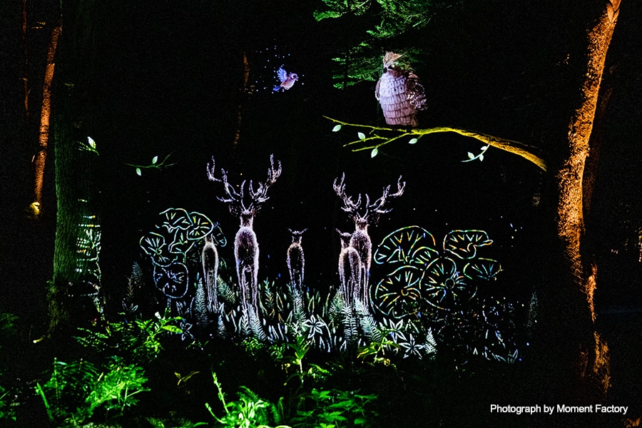 Created by international multimedia studio Moment Factory, Lumina Night Walk experiences have been presented in many countries, using soundscape, light, projection mapping and other digital technologies. Kamuy Lumina is especially significant, as it was the first Lumina Night Walk to be staged in a national park anywhere in the world.