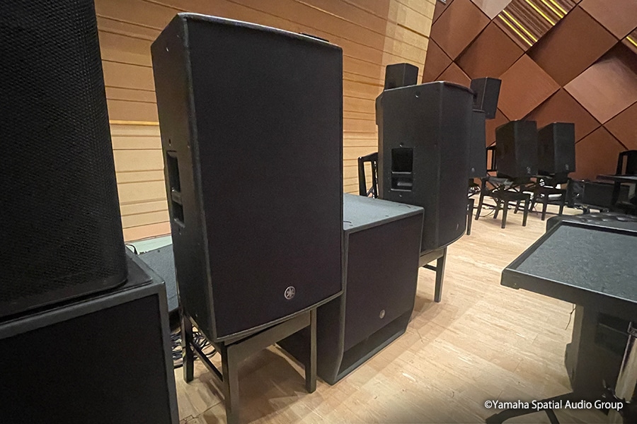 “It would have been difficult to play the parts of so many musicians back using a conventional system, because there would be issues with spanning the audio across multiple speakers, changing the position of sounds during the performance and other potential problems,” says Mr Takagi.