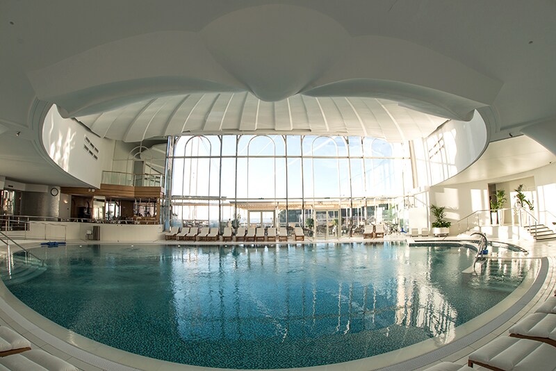 Il centro benessere e fitness comprende due piscine interne riscaldate con acqua di mare più una piscina fredda, una palestra con le ultime novità e una sala cardio fitness, saune maschili e femminili, solarium e jacuzzi.