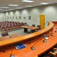 Flexible Space Utilization for a Variety of Events “We have a number of rooms that are normally used separately, but for special events we want to be able to combine them by removing the partitions without having to change the sound system layout or equipment.”This is a fairly common hotel banquet room or multi-purpose hall scenario that can be effectively served by the following system. Room A and Room B in the system example are normally used independently for meetings, parties, or other events, and are therefore equipped with audio systems that can be operated separately. The Yamaha MTX3 is a convenient matrix processor that can accept input from multiple audio sources and microphones and route that audio to specified speaker systems. The EXi8 is handy when you want to increase the number of available microphone inputs, for example. DCP4V4S control panels installed in each room can be set up to allow remote control of microphone level and on/off switching, that are flexibly set as required with the MTX-MRX Editor software. When the partition is removed and the rooms are combined to form one larger space, an appropriate setup that has been pre-programmed using the MTX-MRX Editor can be recalled via a single button, instantly setting up the system for central control.