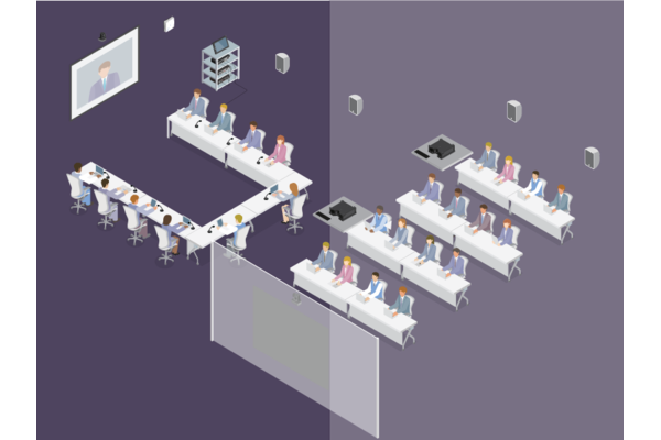 Un grande miglioramento è la funzione di memorizzazione/richiamo dei preset per ADECIA. Il processore per conferenze RM-CR può essere utilizzato per dividere e combinare le sale con diverse disposizioni.