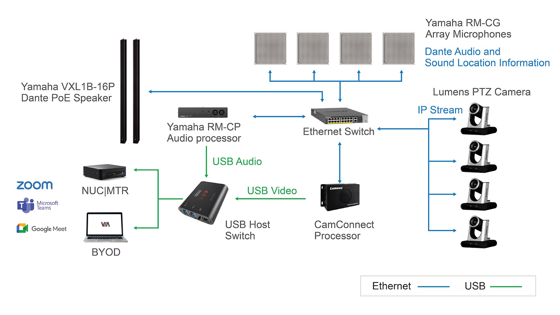 By combining Yamaha’s RM-CG Ceiling Array Microphone with Lumens’ CamConnect real-time PTZ voice tracking solution, the organizations have transformed the hybrid meeting and remote event experience by delivering high-quality audio and video which focuses automatically on the active speaker in the room.