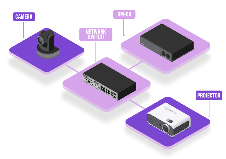 È possibile inviare comandi dall'RM-CR a dispositivi esterni per controllarli. Ciò significa che telecamere, display o simili possono essere controllati direttamente dall'RM-CR.