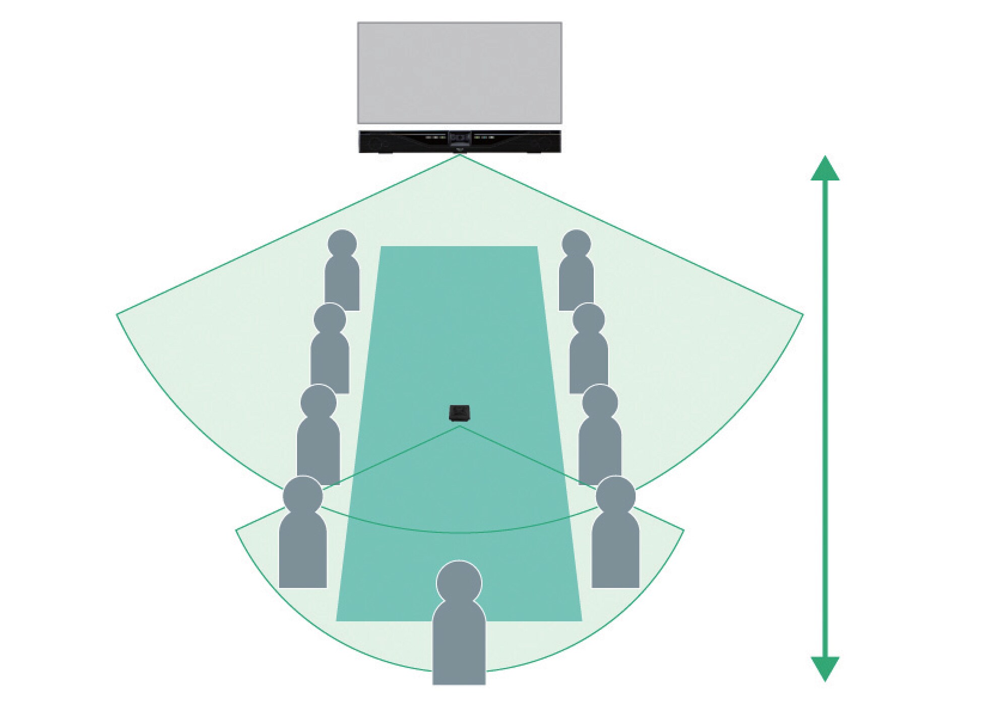 Il rilevamento audio del sistema CS-700 è ottimizzato appositamente per i partecipanti che si trovano all'interno di un raggio di circa 3,5 m (12 ft). Grazie al microfono aggiuntivo per il sistema CS-700, puoi ampliare ulteriormente questo raggio operativo.