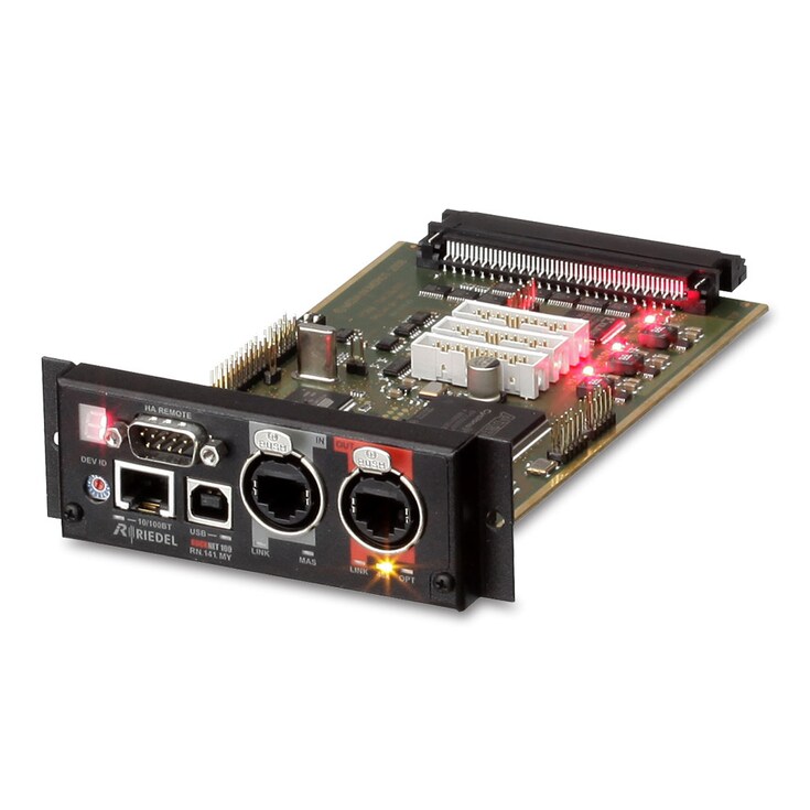 - 10/100 MBit Ethernet Virtual Switch to any Optocore device featuring Ethernet