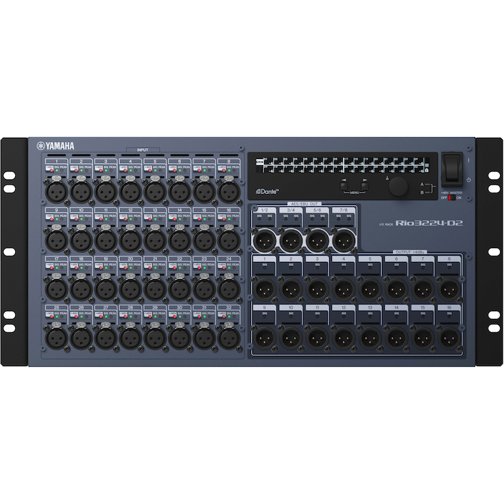 Questo rack I/O di elevate prestazioni e potenza, è compatibile sia con la serie Yamaha CL e QL sia con la serie RIVAGE PM. Presenta 32 input analogici, 16 uscite analogiche e otto uscite AES/EBU. Il Rio3224-D2 si collega direttamente all'audio network digitale Dante, consentendo una configurazione adattabile del sistema. La doppia alimentazione garantisce un'alta affidabilità e un display grafico permette un facile controllo visivo.