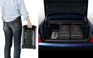 Nonostante si disponga di un mixer e di un amplificatore in un singolo dispositivo, le dimensioni di EMX2 (37.5cm x 22cm x 15cm / 14.8"" x 5.8"" x 8.7"") sono sorprendentemente modeste e lo rendono facilmente adattabile al bagagliaio di una piccolo autovettura insieme agli altoparlanti. La struttura leggera è dotata di maniglie per garantire una facile trasportabilità, un fattore importante nelle installazioni PA quando il tempo è cruciale.