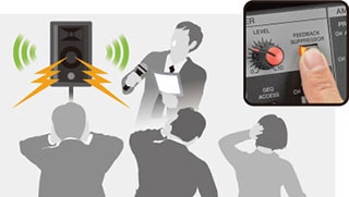Alcune cose possono far si che una performance live o un discorso prendano una brutta piega come ad esempio il fischio improvviso, fastidioso e spesso imbarazzante del feedback indesiderato. L'EMX7/5 viene fornito con un soppressore di feedback che utilizza una tecnologia Yamaha unica per eliminare istantaneamente noiosi feedback con la semplice pressione di un tasto, che sfrutta un filtro notch a sette bande.