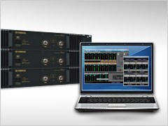 The ACU16-C amplifier control unit and a PC running NetworkAmp Manager can monitor/control the operating conditions of up to 32 amplifiers, including power, attenuation, inputs, outputs, temperature and load impedance.