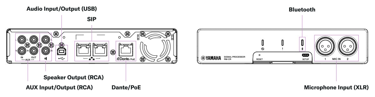 Network Specifications | Ether1 | Dante Audio/Dante Control, Remote Control, WebUI, PoE+ | |