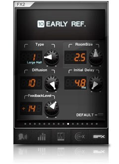 I parametri di "Tempo di riverbero" e "Diffusione" aggiunta, "Delay iniziale" e "Dimensioni della stanza" possono essere regolati per ogni effetto usando i potenziometri dedicati sul display grafico del MGP Editor.