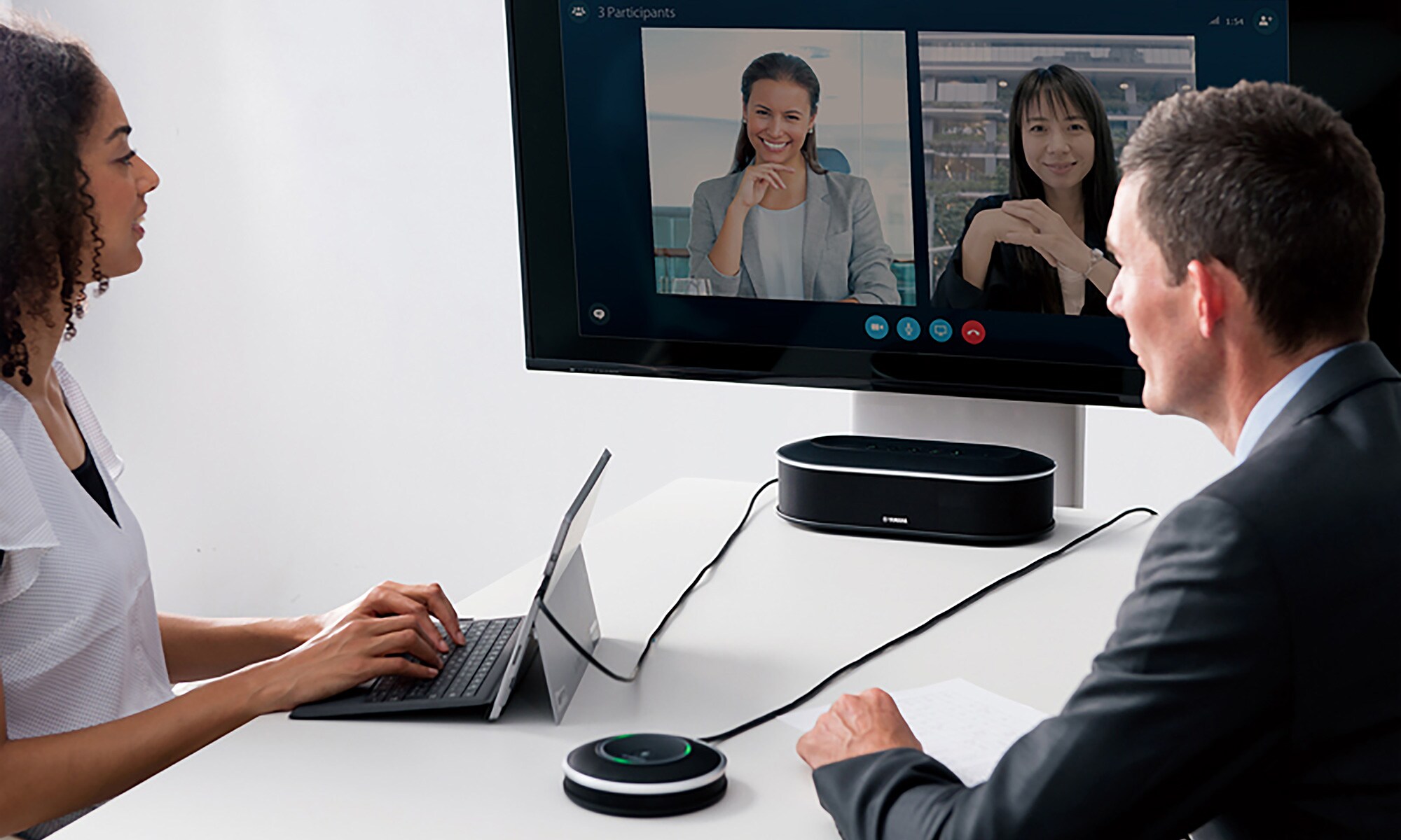 Il sistema YVC-1000MS dà vita alle comunicazioni Skype remote per riunioni da 6 a 40 partecipanti