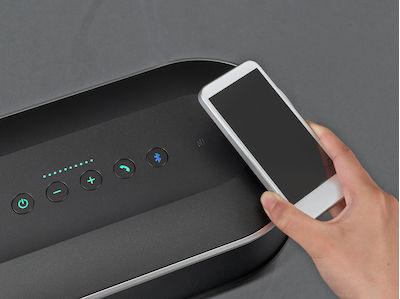Connettiti in modo semplice e veloce avvicinando uno smartphone o un tablet compatibile con NFC al logo NFC sul lato superiore dell'unità di controllo mentre il pulsante Bluetooth lampeggia*4.