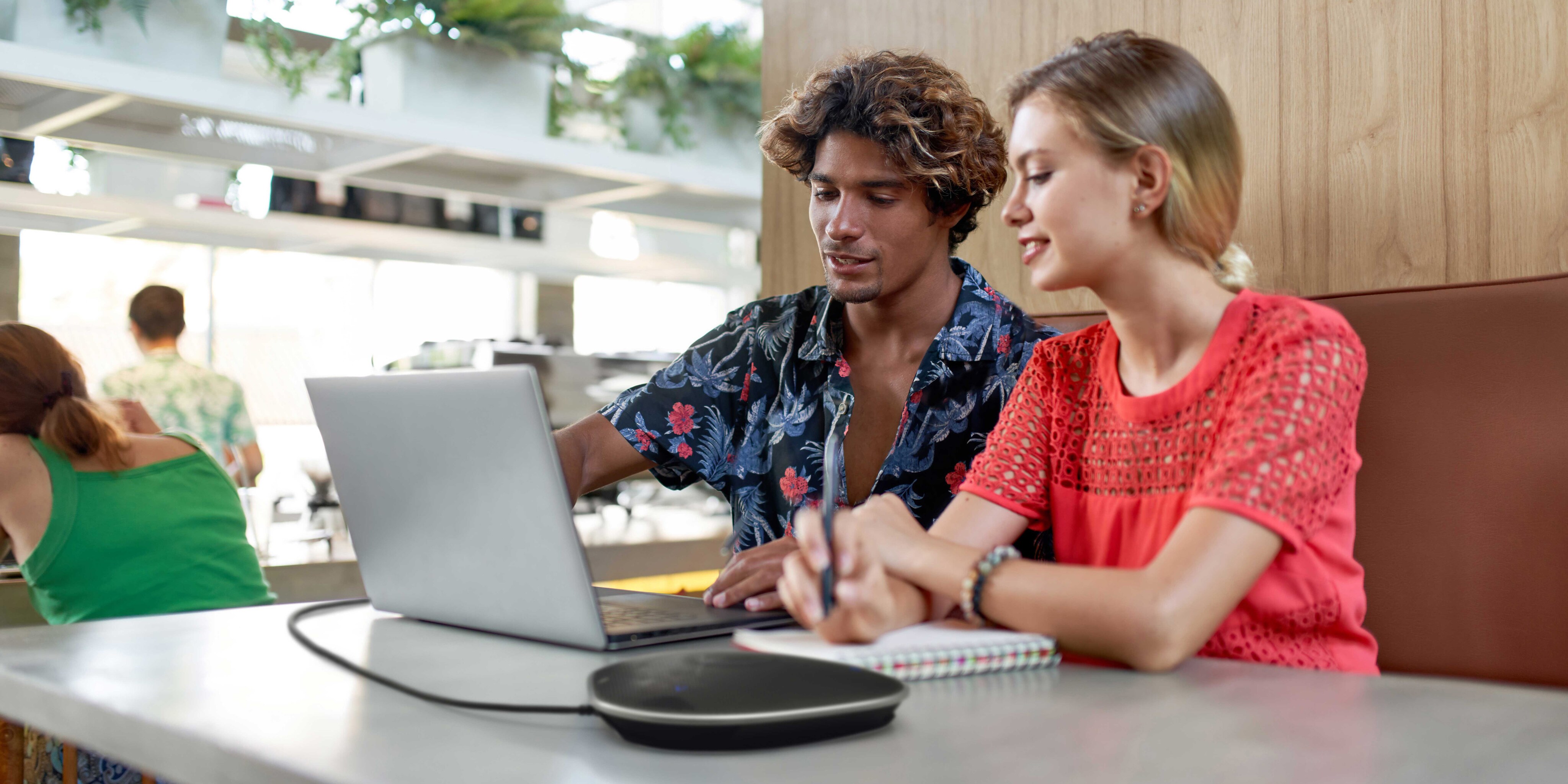 Problema: gli ambienti di lavoro open space possono essere rumorosi, a causa della presenza di colleghi che parlano, apparecchiature per l'ufficio e riunioni nelle vicinanze. Durante una teleconferenza, la conversazione può essere interrotta da questi rumori e i partecipanti connessi possono avere difficoltà a sentire quello che dici.