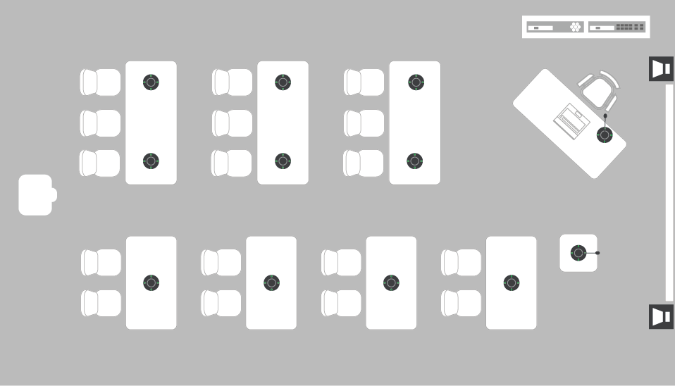 Multi-purpose rooms that occasionally host spontaneous lectures or meetings are ideally equipped with a combined ADECIA Ceiling and Tabletop Solution. A custom designed amplifier and speaker system then provide clarity and transparency without distraction.