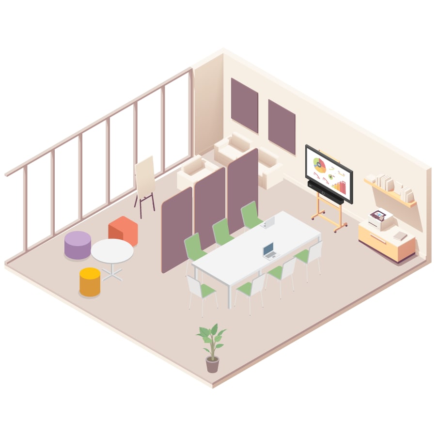 Check out how “Face Focus Beamforming” function brings the smooth collaboration even at an open and noisy environment.