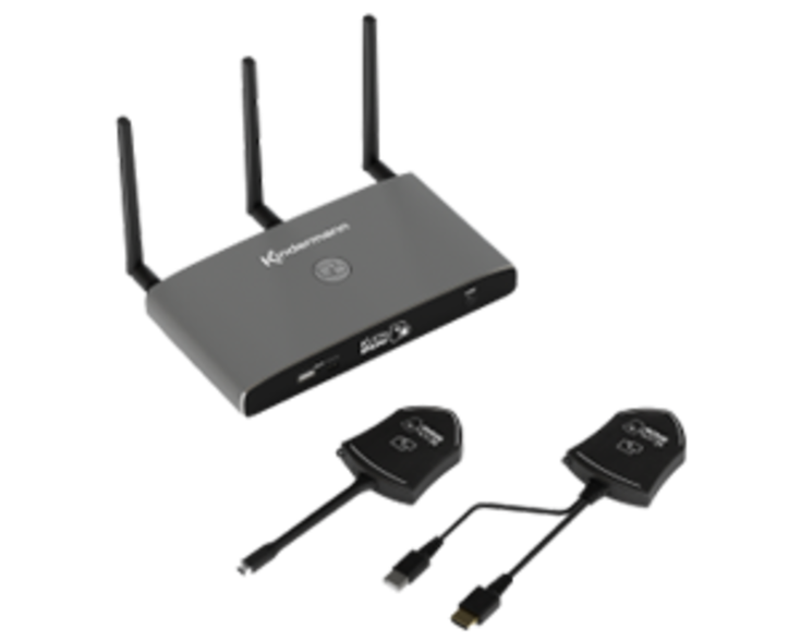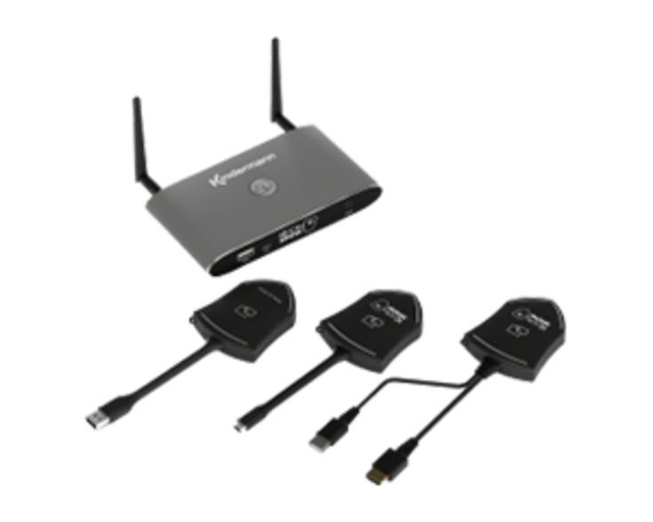 Kindermann KLICK&SHOW soddisfa tutti i requisiti che il "nuovo lavoro" porta con sé. Facile da usare - compatibile con tutti i dispositivi e i sistemi operativi più diffusi - unicamente universale - può essere utilizzato tramite trasmettitore, tramite client software, tramite app o in modo nativo tramite AirPlay.