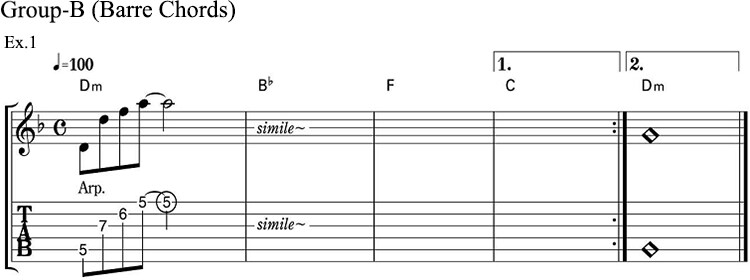 Candidates prepare three given riff patterns and are asked to play, with the backing track, one chosen by examiners.