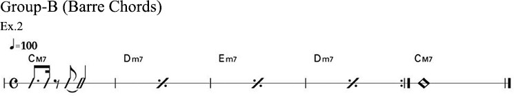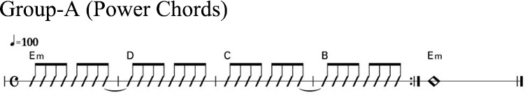 3. Candidate plays the riff pattern with the backing track from the beginning to the end.