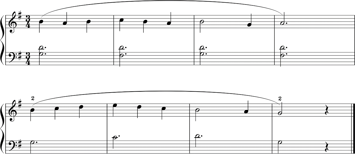 - For the blank parts of the score, candidates are expected to play their own arrangement based on the pattern presented at the beginning.