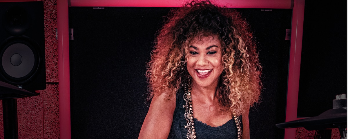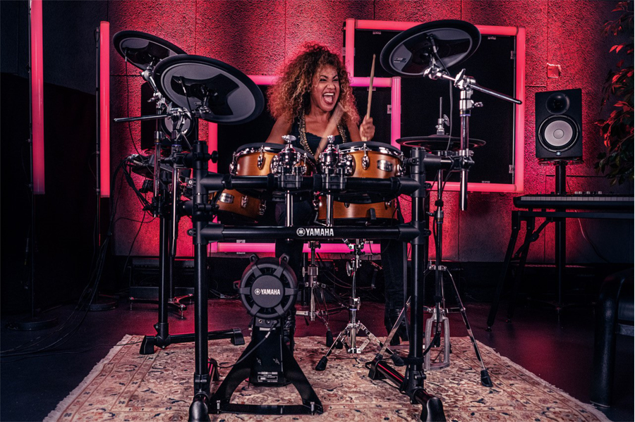 Cherisse's specialties include the use of hybrid sets consisting of acoustic and electronic drum kit elements. Especially in her performances with Simple Minds, she relies on an extensive system with many controller possibilities. Due to her musical range and extensive experience, Cherisse is currently one of the busiest drummers in the UK.